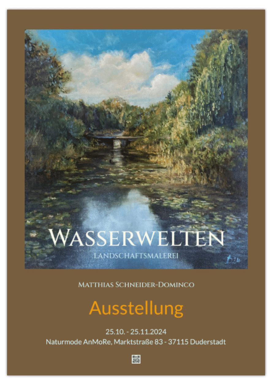 AUSSTELLUNG „WASSERWELTEN“ IN DEN RÄUMEN DES MODEATELIERS „NATURMODEN AnMoRe“ IN DUDERSTADT Zeitraum: Zur Ausstellung