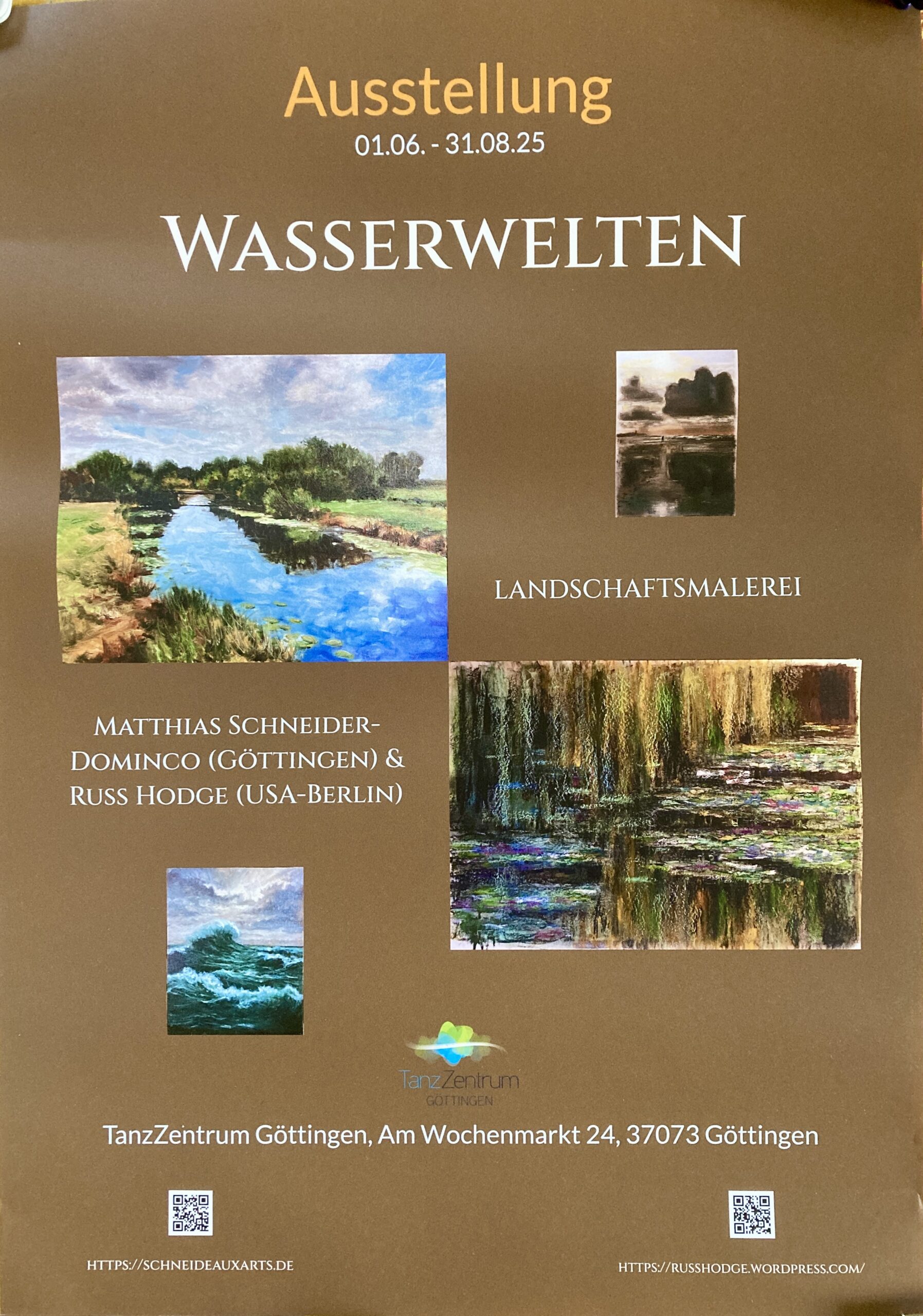 2. Ausstellung „Wasserwelten“ – Landschaftsmalerei von Russ Hodge (USA/Berlin) und Matthias Schneider-Dominco im TanzZentrum Göttingen